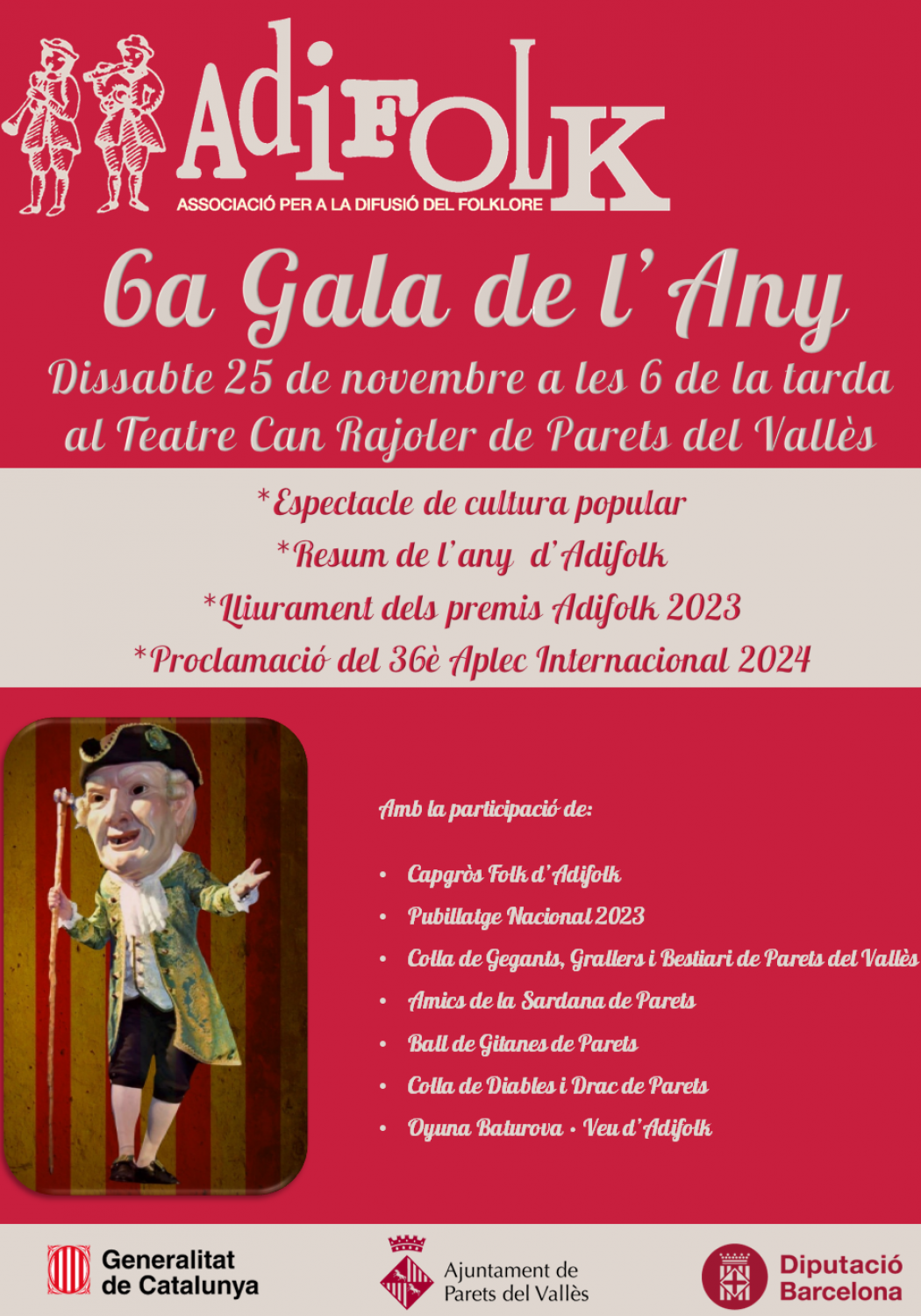 18:00h. - Inici de la 6a GALA DE L'ANY D'ADIFOLK 2023