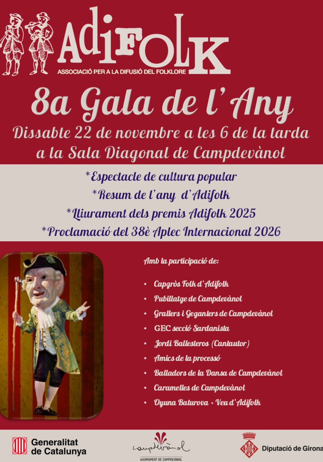18:00h. - Inici de la 8a GALA DE L'ANY D'ADIFOLK 2025