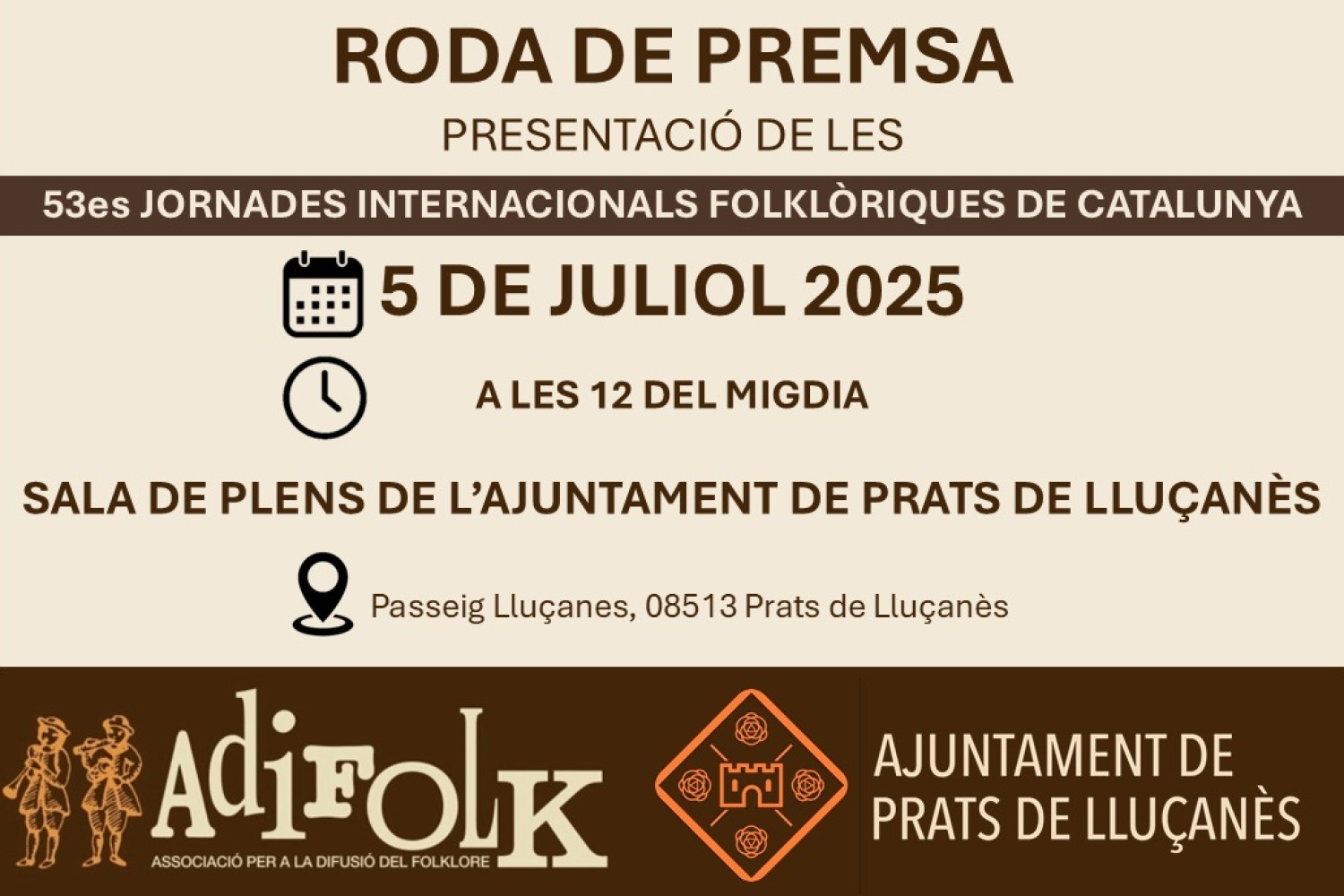 Adifolk presentarà les 53es Jornades Internacionals Folklòriques de Catalunya 2025, que tindran lloc del 5 al 14 de setembre arreu de Catalunya.