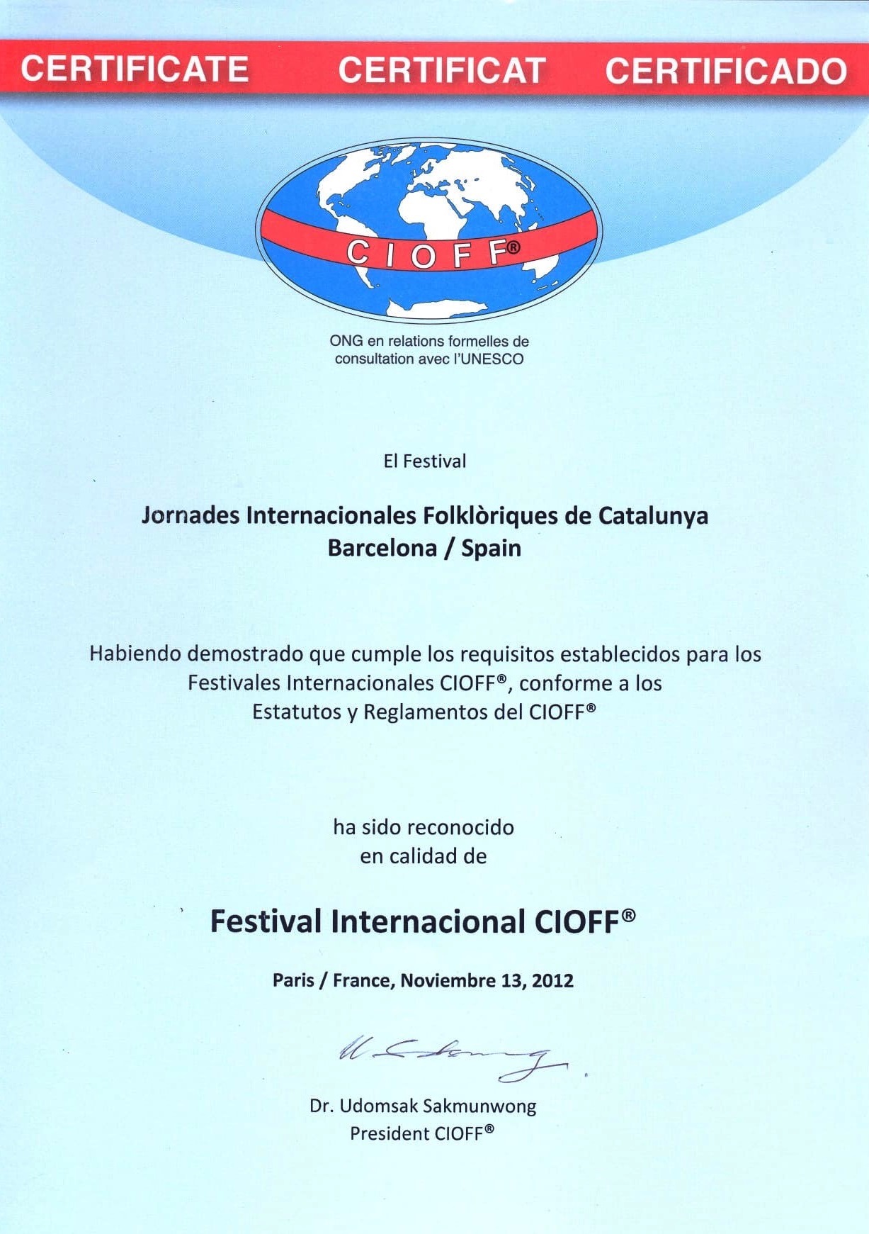 This folk festival was launched in 1972 in Barcelona with the Esbart Lluís Millet, originally named, JIF International Folklore Days (Jornades Internacionals Folklòriques (JIF), under the slogan; “The dances of the people, for the people." Folk dance groups from all over performed at this inaugural event.
